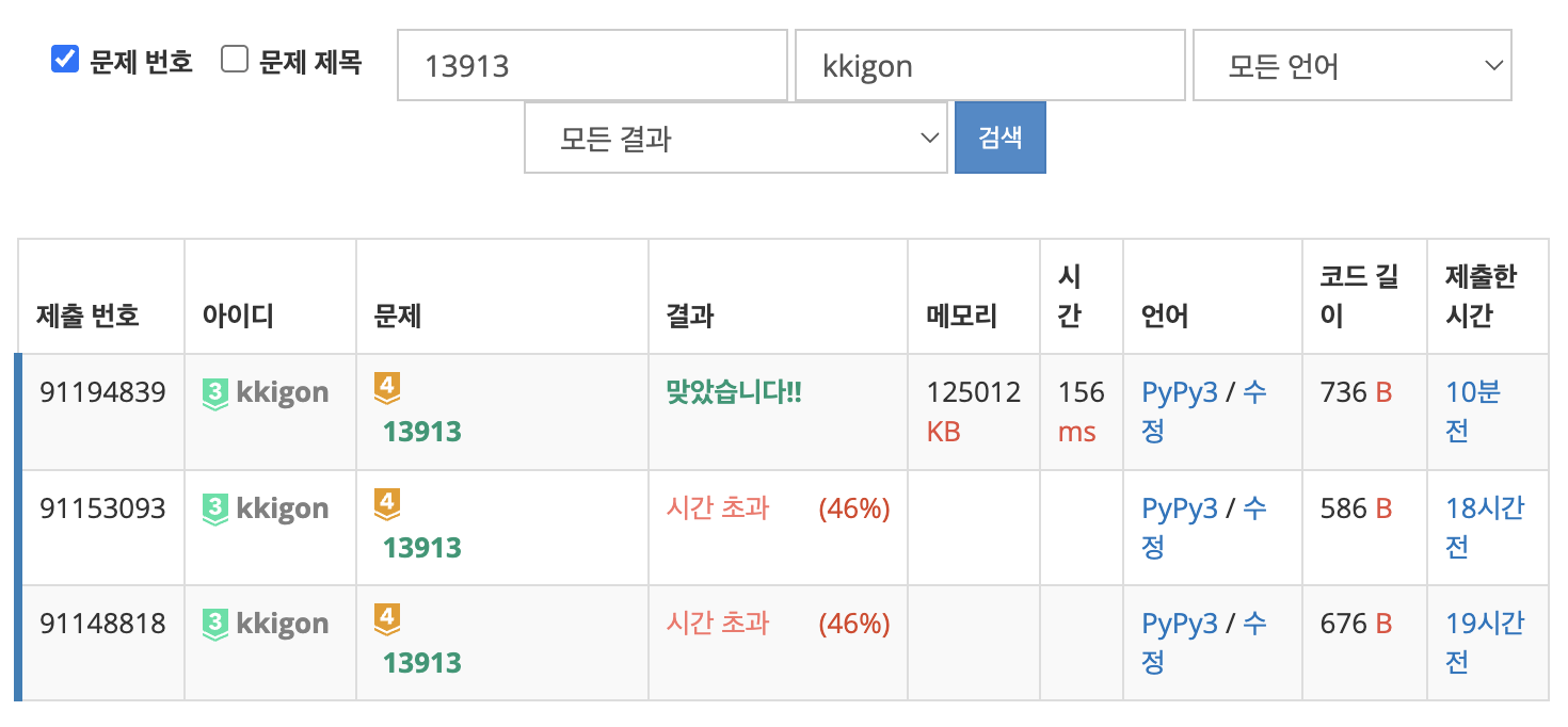 이렇게 하면 결과는 시간초과, 그리고 메모리초과이다. 왜? 그 긴 리스트들을 전부 큐 안에 저장하니까.