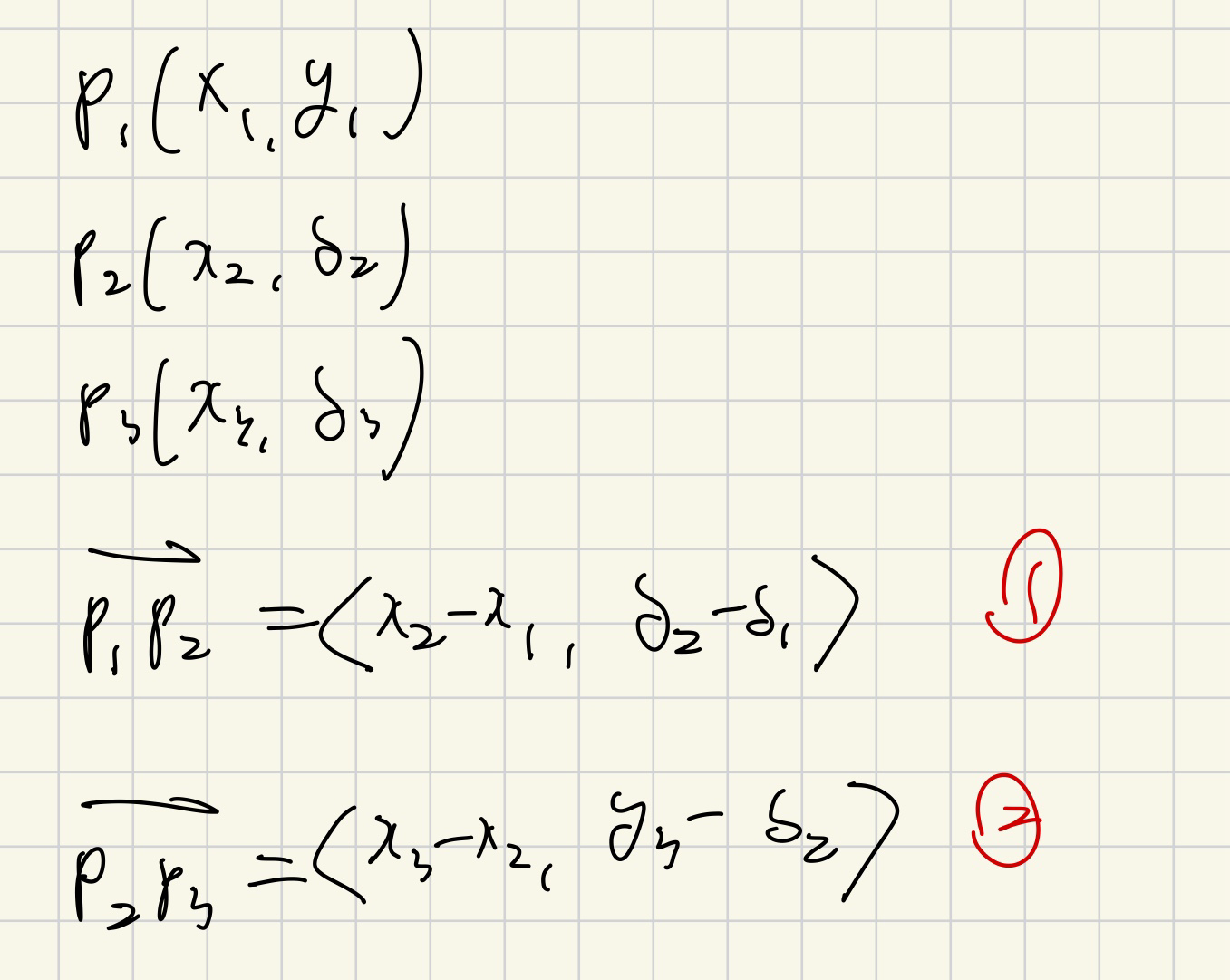 주어진 점 P1, P2, P3가 있고 이것이 순서대로 반시계 방향을 이룬다고 해보자.