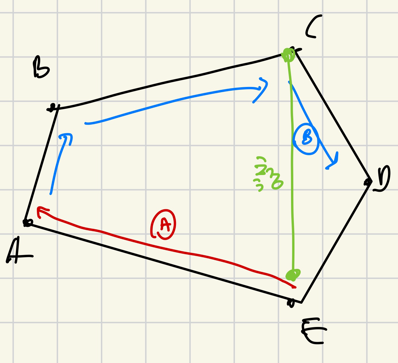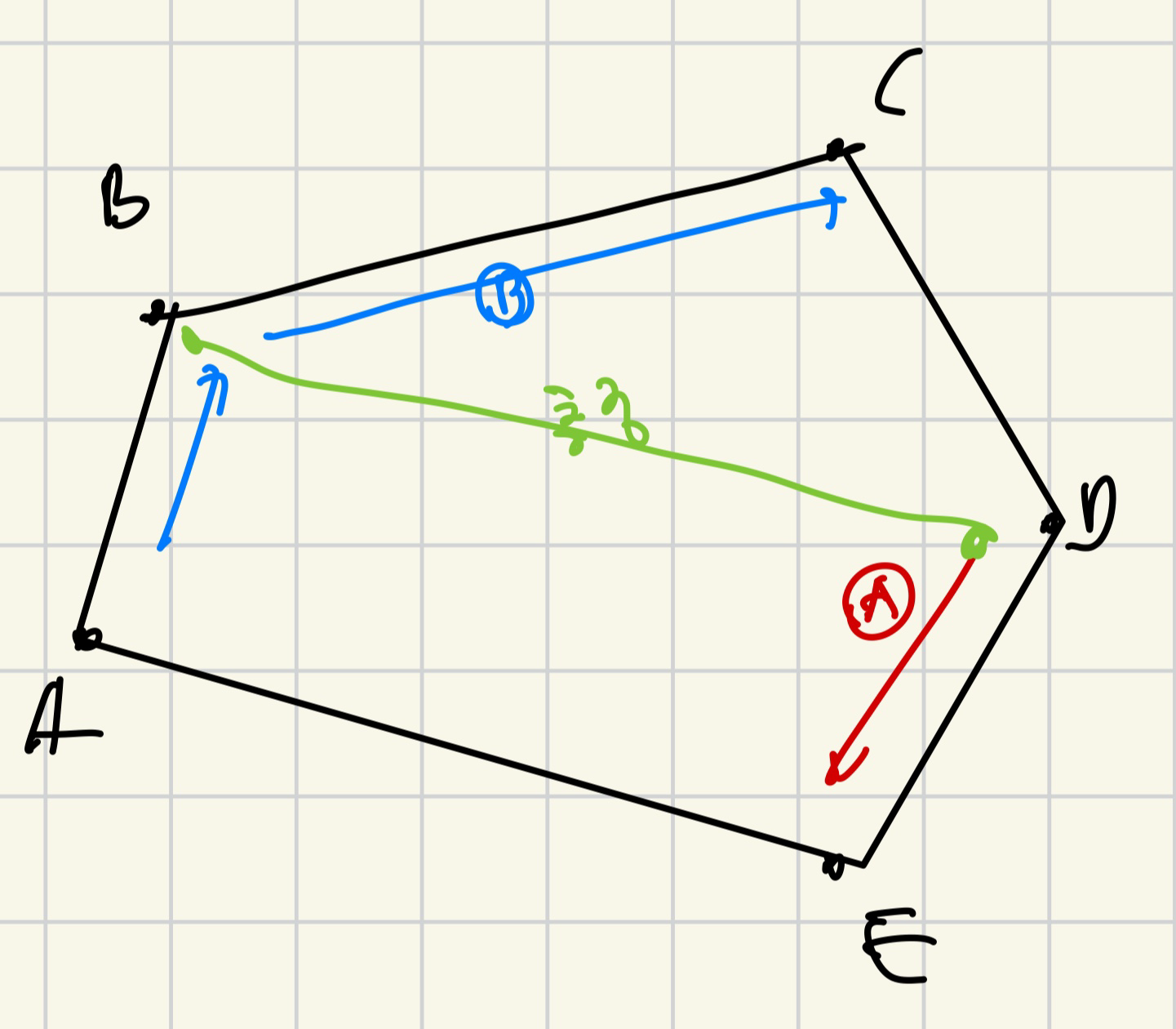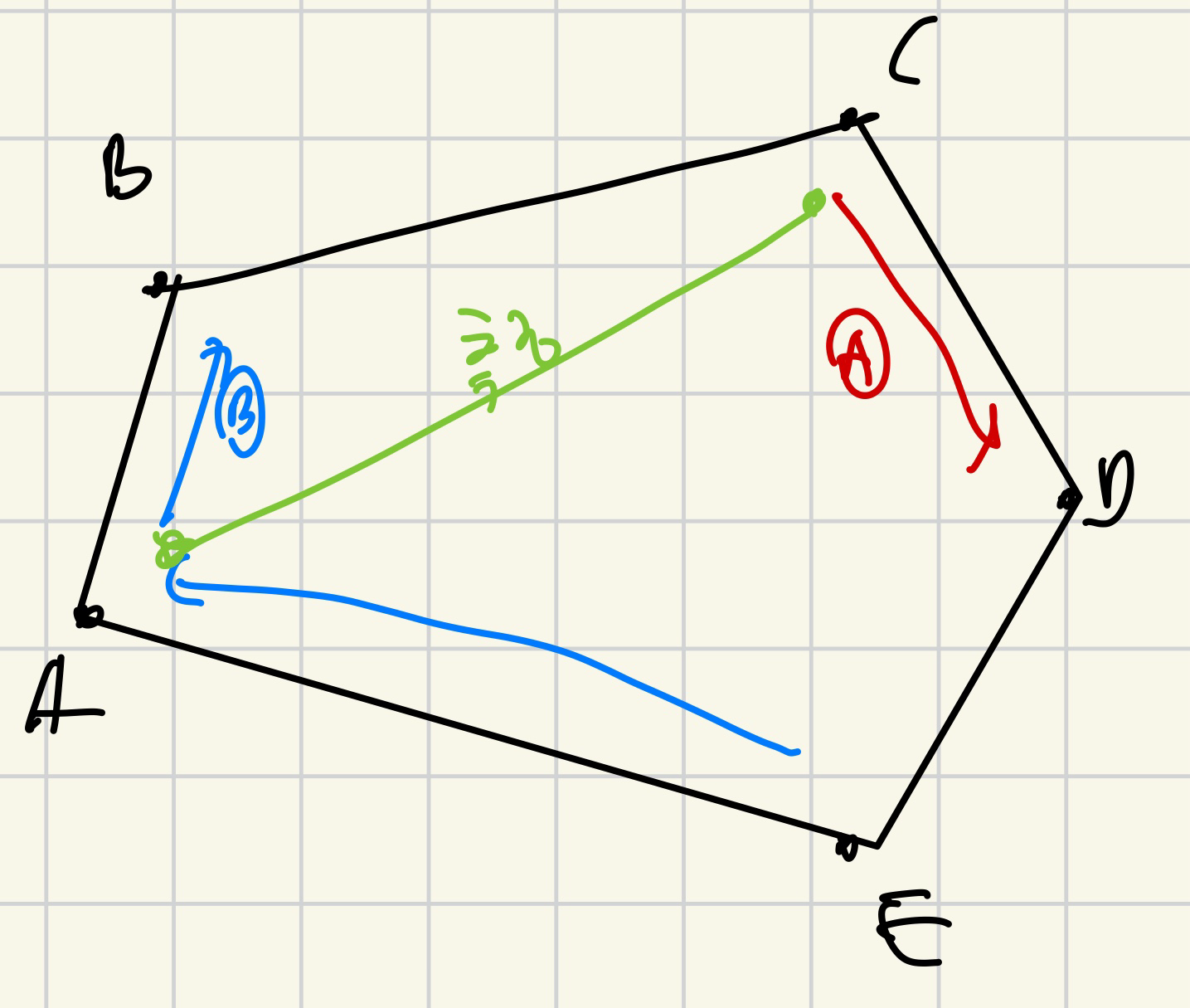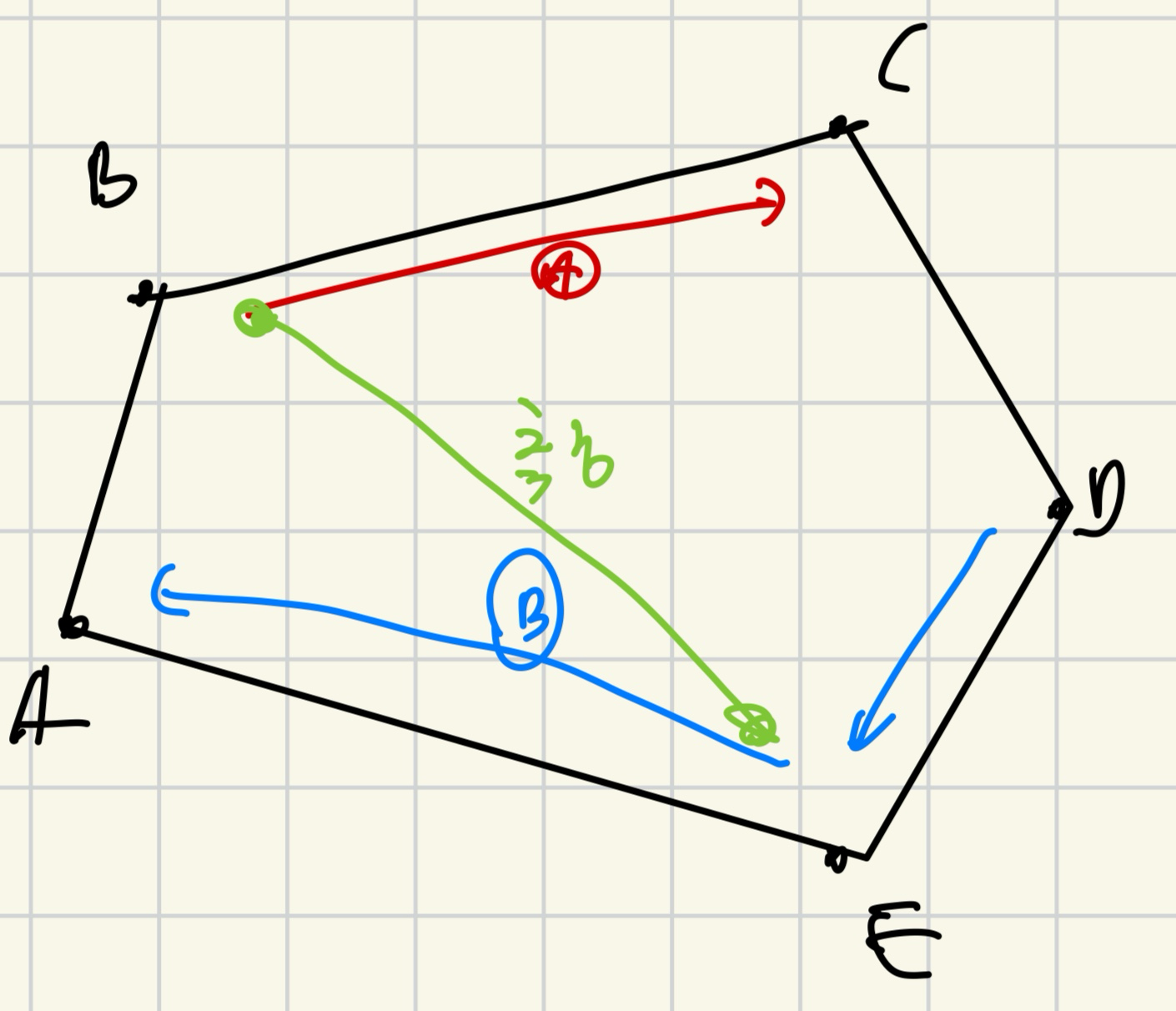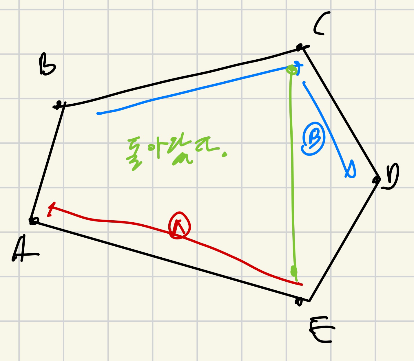 1. 한 점을 임의로 잡는다. 그리고 그 다음 점과 연결한 벡터를 얻는다. 이 벡터를 A라고 하자.
