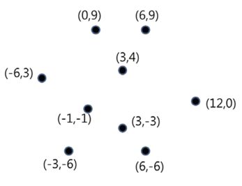 위의 예제에서는 (12,0)의 도시와 (-6,3)의 도시가 가장 먼 유클리드 거리를 갖는다.