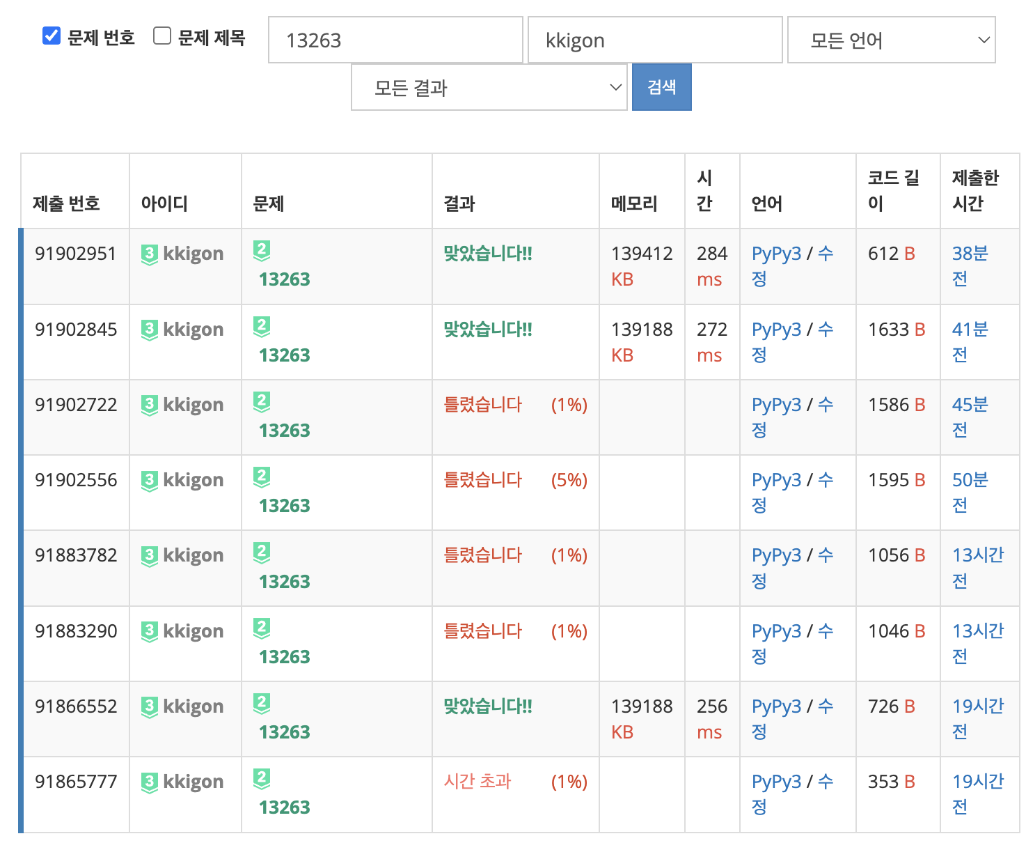 (이렇게 구하는 것이 아까 맨 처음에 작성한 O(n^2) 풀이이다)