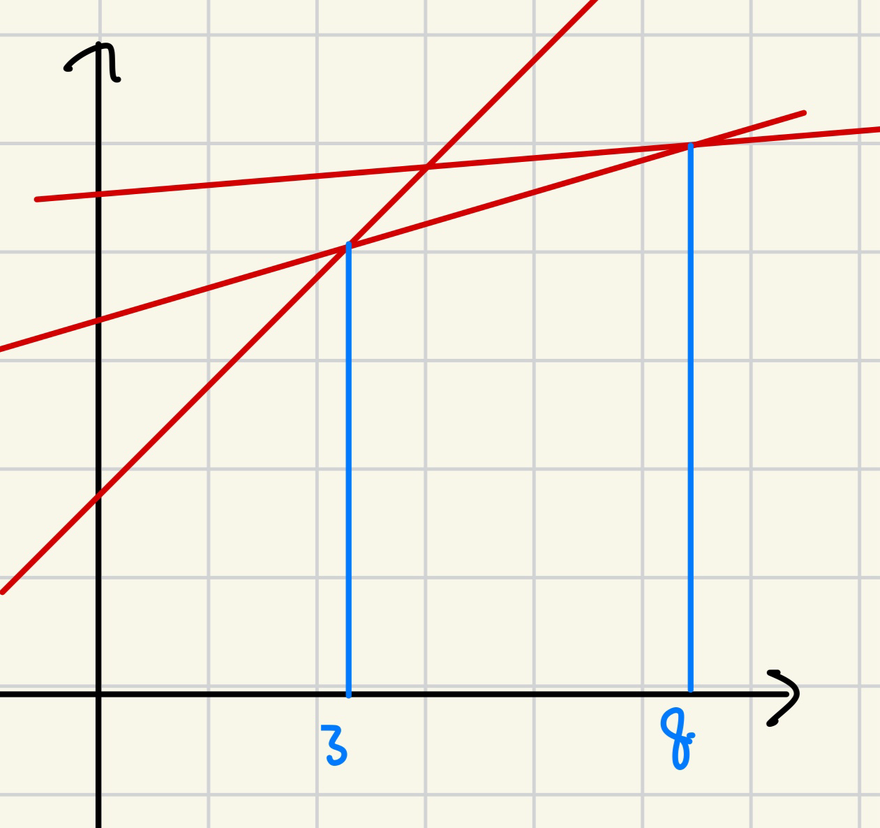 그리고 우리는 일차함수 두 개의 교차점의 x좌표를 찾는 함수가 하나 필요할 것이다.