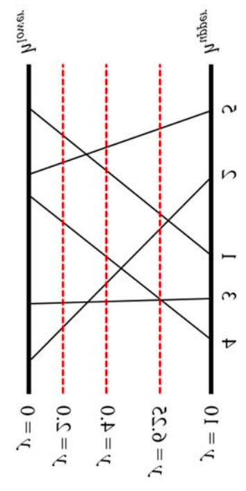 There are two distinct horizontal lines hupper and hlower in the xy-coordinate plane and n line segments connecting them. One endpoint of each segment lies on hupper and the other on hlower. All endpoints of the segments are distinct. All segments are numbered from 1 to n. Consider a horizontal line hi located between hupper and hlower, which will be given by a query. The line hi crosses all segments definitely. We want to know which segment intersects at the leftmost with hi. You can observe that the leftmost intersection point between the segments and a query line may lie on one or more segments since two or more segments may intersect at a single point. In that case, the leftmost segment is defined as the segment which has the leftmost endpoint on hupper.