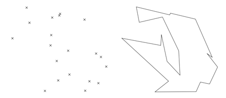 예를 들어, 왼쪽 그림의 점으로 만든 다각형은 오른쪽과 같다.