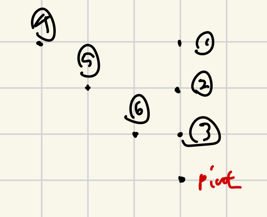 점들을 입력받고, 피벗을 정하는 코드이다.