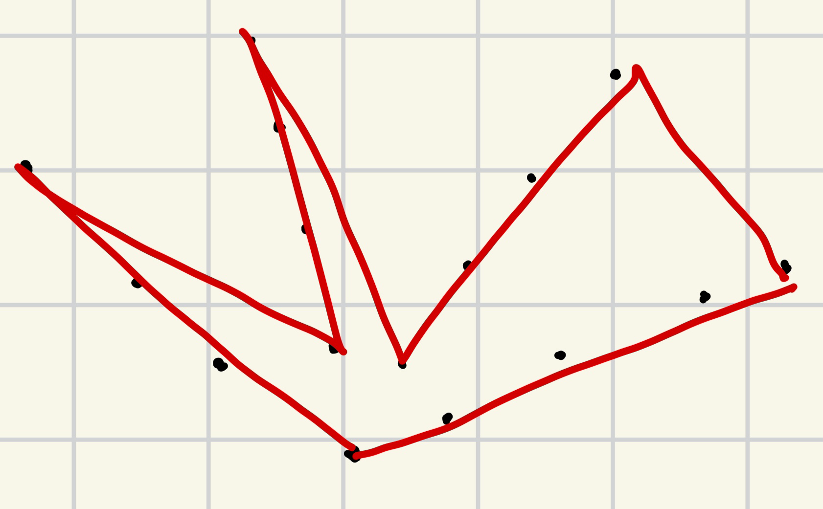 평면 위의 점의 집합이 주어졌을 때, 다각형을 만드는 프로그램을 작성하시오. 집합의 모든 점은 다각형의 꼭짓점이어야 하고, 집합에 없는 점을 다각형의 꼭짓점으로 가질 수 없다. 다각형의 두 선분은 연속하는 두 선분의 교점을 제외하고는 교차할 수 없다.