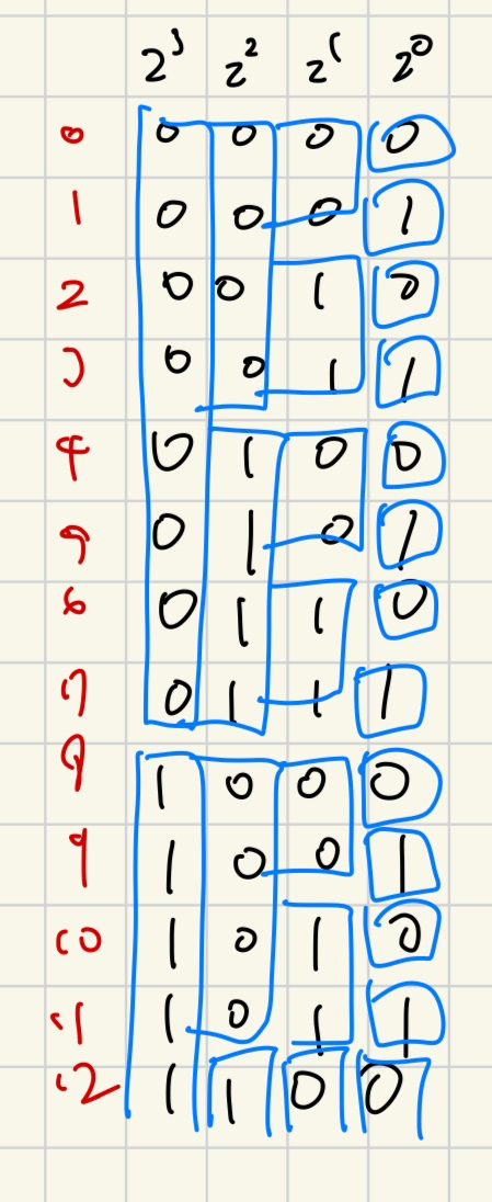 아하. 2^n에 해당하는 자리수는 2^n개씩 0과 1이 묶여서 나오는구나.