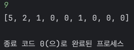 [5, 2, 1, 0, 0, 1, 0, 0, 0]