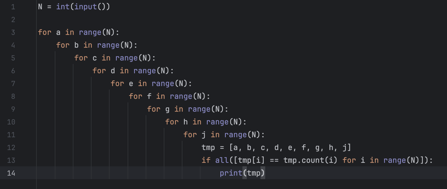 이 다음부터는 코드를 짜서 조건을 만족하는 수열을 찾아보았다. (N = 9일때까지 돌렸는데, 돌리는데 5분 걸렸다.)