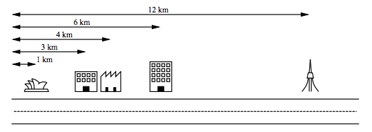 예를 들어, 아래 그림과 같이 다섯 개의 고객회사들이 같은 길 위에 위치한다고 하자. 이 회사들은 각각 길의 출발점에서 기준하여 1 km, 3 km, 4 km, 6 km 그리고 12 km 에 위치하고 있다. 통신회사에서는 오직 k = 2 케이블만을 제공한다.