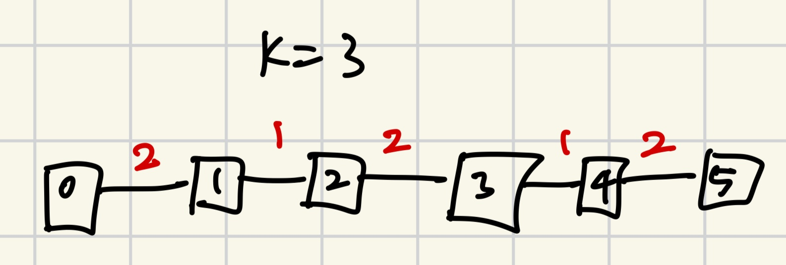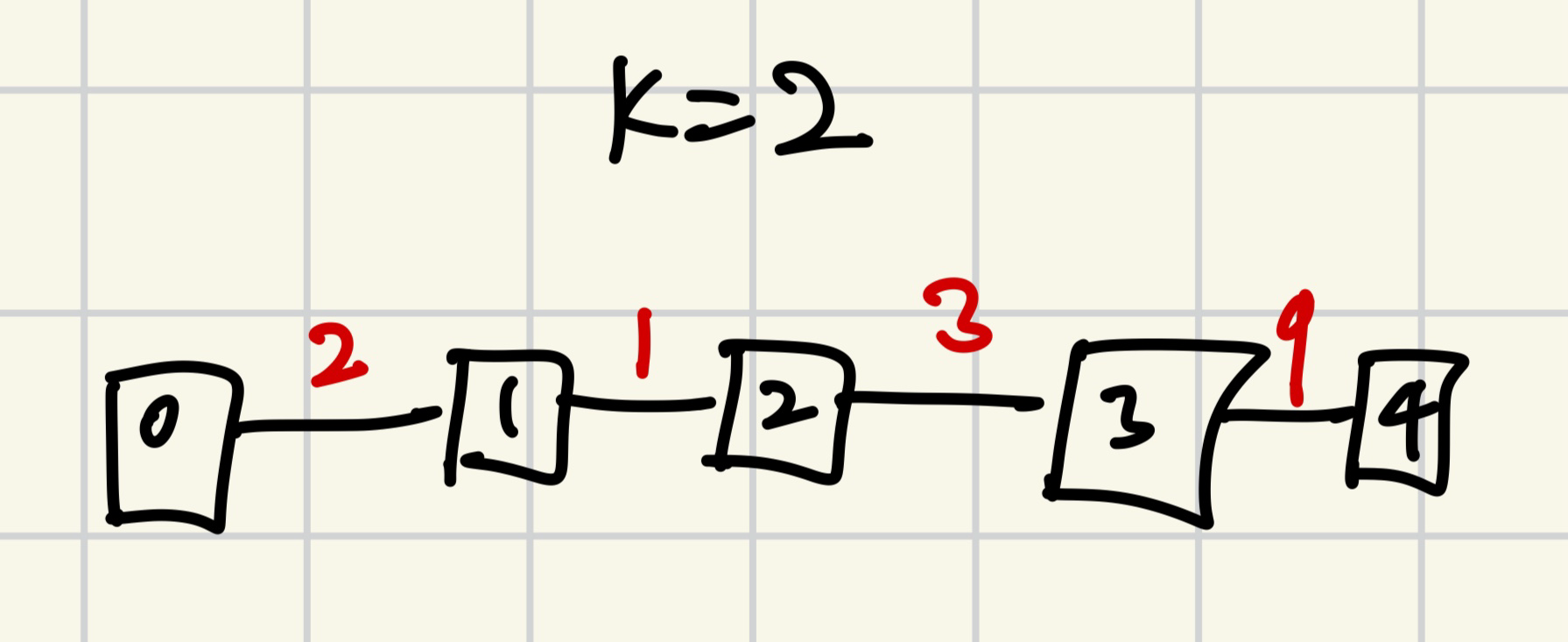이를 K번 반복하면 된다(가장 맨 왼쪽이나 오른쪽 간선같이 반례가 안 발생하는 경우에는 그냥 그 간선을 빼주기만 한다).