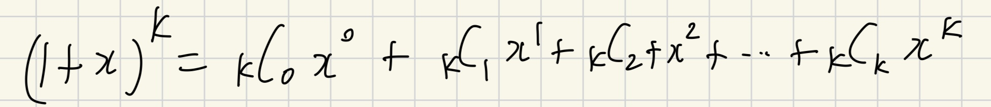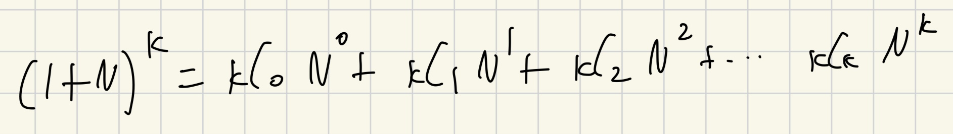 우리는 위와 같은 이항계수 전개식을 생각해줄 수 있을 것이다. 심심하니까 x 대신 N을 넣어보자.
