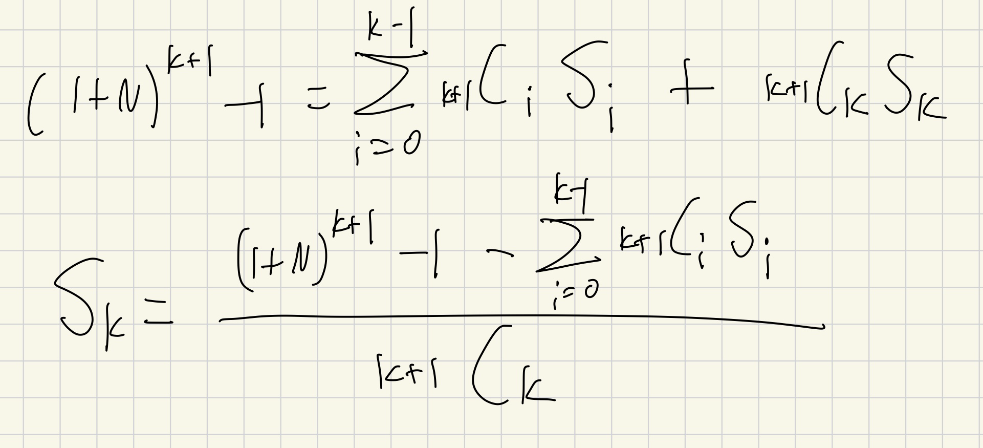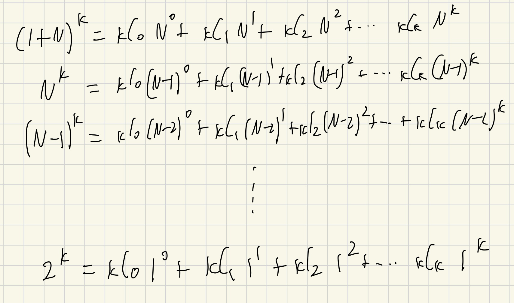 맨 마지막 끝부분이 kCk인데, 이는 1과 같다. 그러니까 다음과 같이 전부 더해주면 축차?가 어느정도 가능하다.