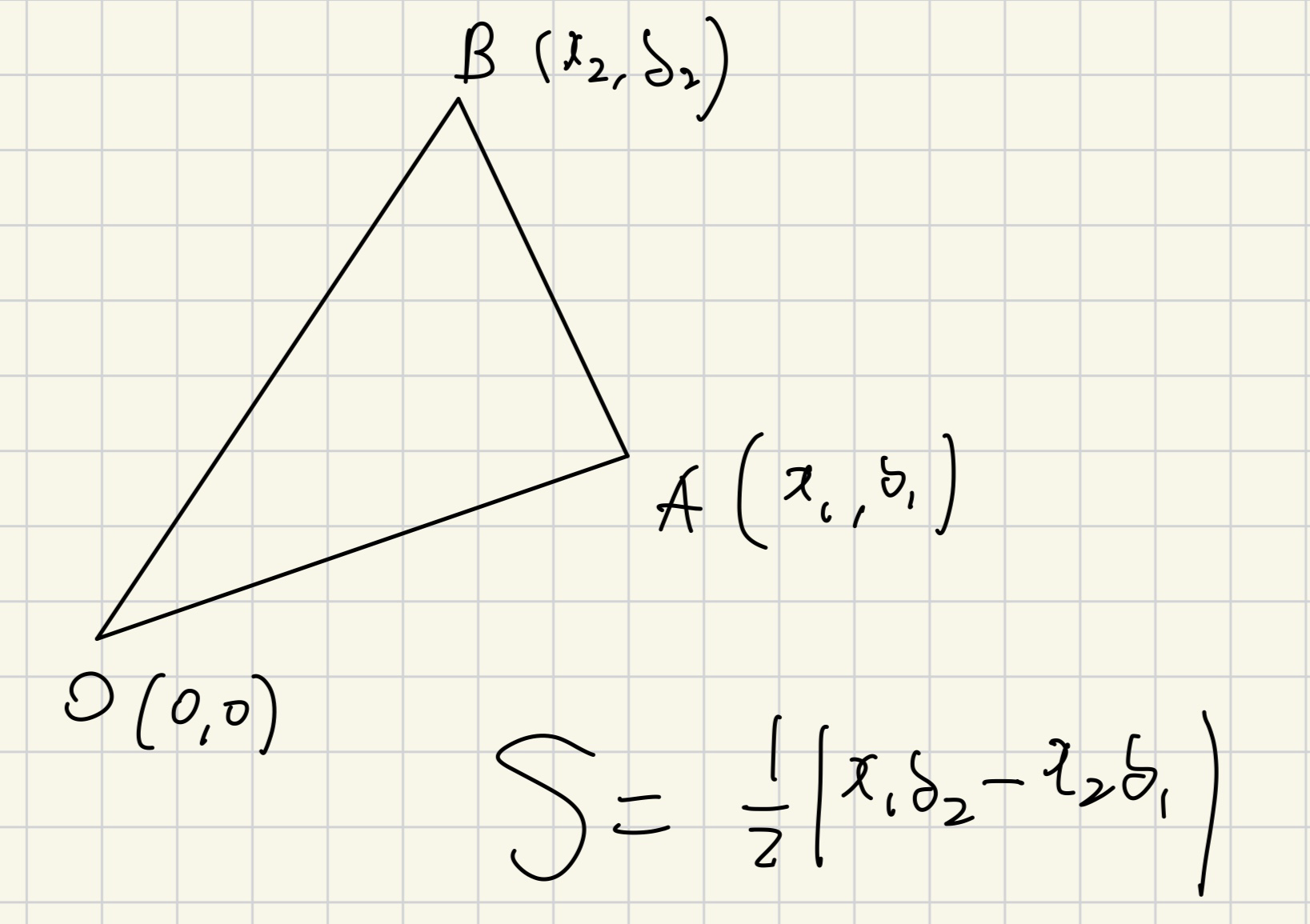 $x_{1}y_{2} - x_{2}y_{1}$은 벡터 AB의 외적이다. (실제로 이렇게 말을 하는지는 모르겠다.)