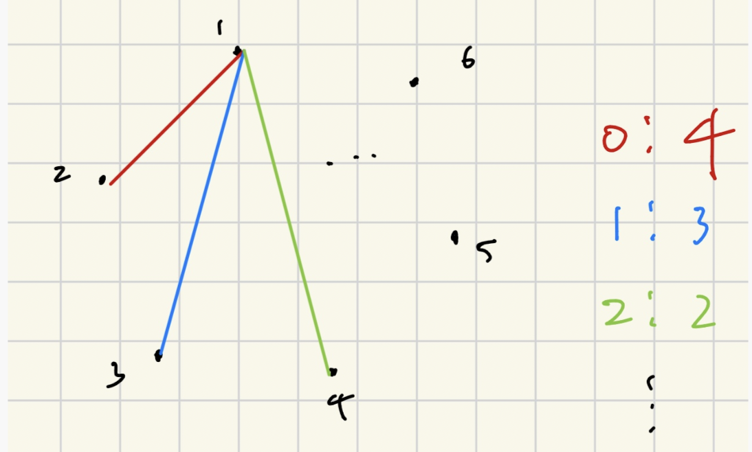 위의 육각형 모양(점 6개)에서 그룬디 수를 구해보자.