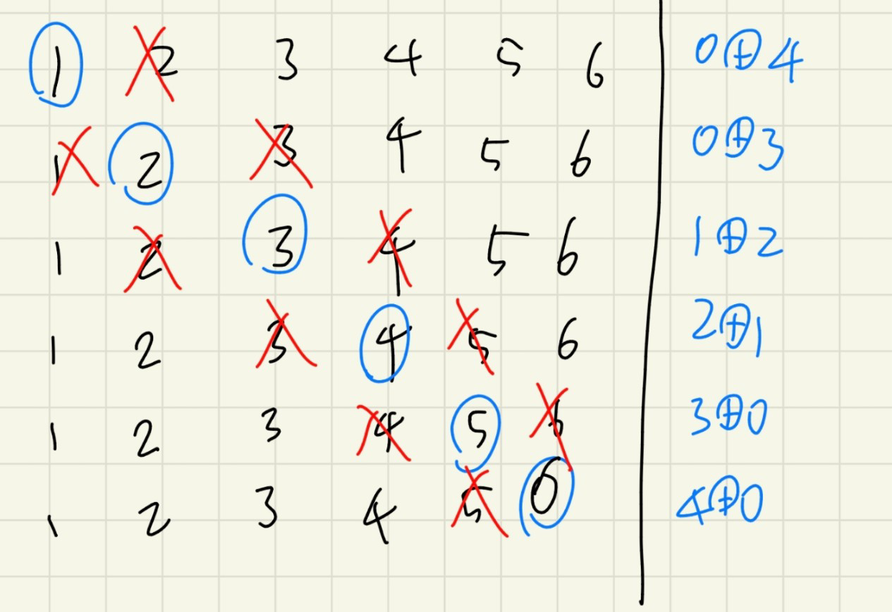 이렇게 여섯 가지의 보드판이 나누어지는 경우에 대해서 mex 함수를 적용해주면 최종적으로 grundy[6]을 구할 수 있다.