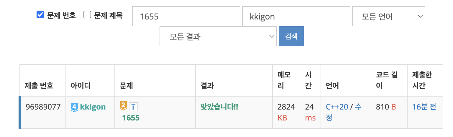 https://www.acmicpc.net/problem/1655풀이우선순위 큐 두 개를 활용해서 해결할 수 있다.최대 힙과 최소 힙 두 종류를 각각 만들고, 각각 '작은 수'와 '큰 수'를 저장한다. (두 힙의 이름은 각각 small, big라고 하자.)현재 들어오는 수가 big의 top보다 작거나 같으면 small로 보내고, 아니면 big으로 보낸다.그리고 두 우선순위 큐의 크기(균형)을 맞춰준다. 항상 두 큐의 크기가 같거나, 아니면 small이 하나 더 크게 만들 수 있다.그러면 각 단계에서 small의 top이 정답이 된다. 이게 무슨 소리냐면,예제 1, 5, 2, 10, -99, 7, 5를 예를 들어보자. 1이 들어왔을 때는 다음과 같다. small 1big(답: 1) 5가 들어오면, smal..